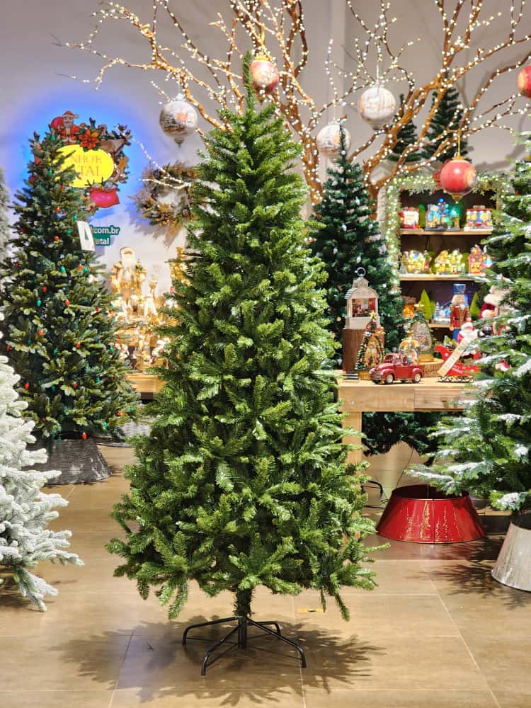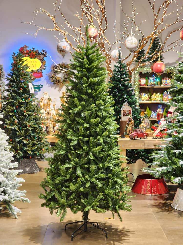 Árvore SLIM BRYANT, super lançamento em árvore slim, a diferença desta árvore slim para as demais e seu sistema de galhos da base , são aquelas galhos guarda-chuva o que deixa ela mais cheia e galhos mais resistentes, essa é uma execelente opção de árvore slim tradicional para que não possui muito espaço