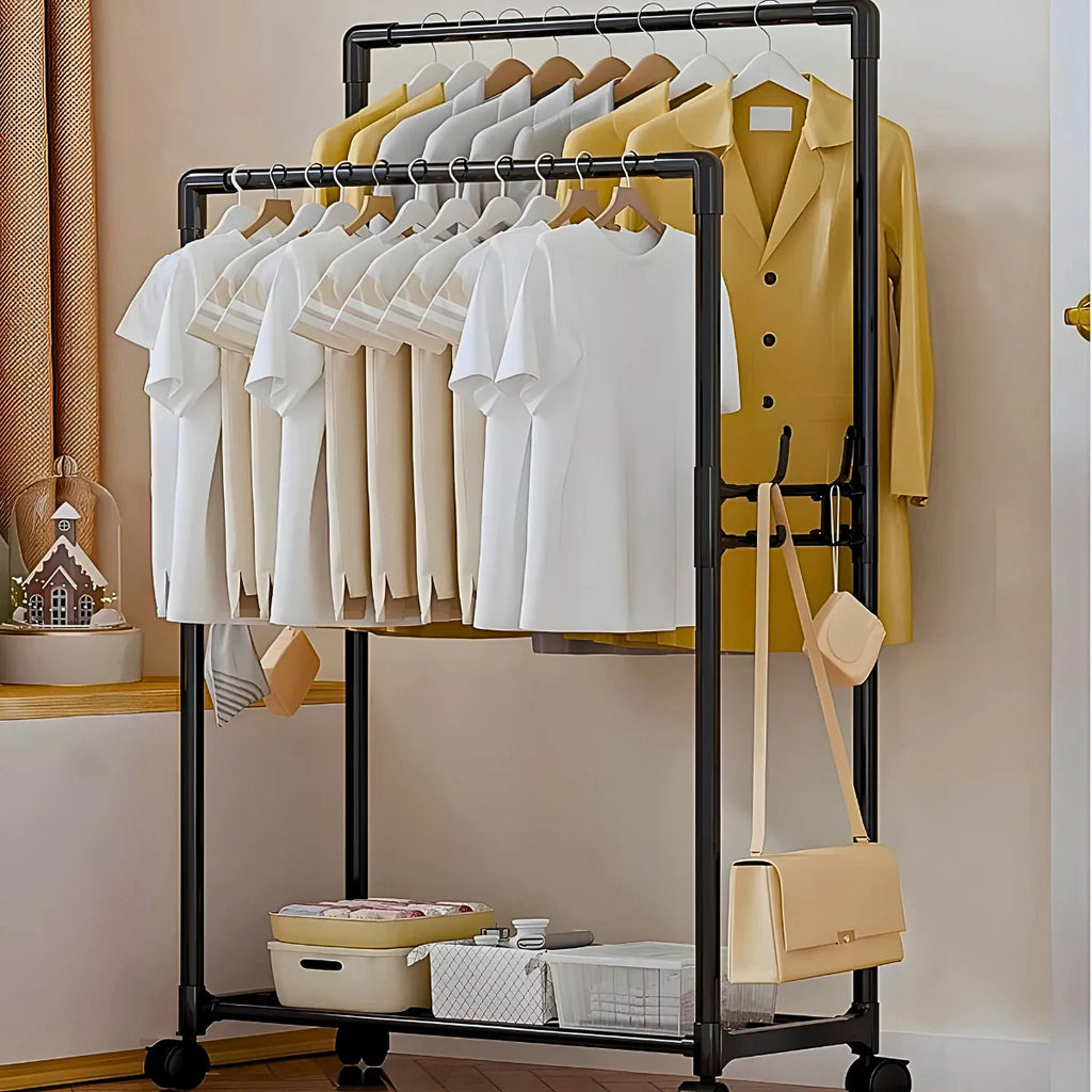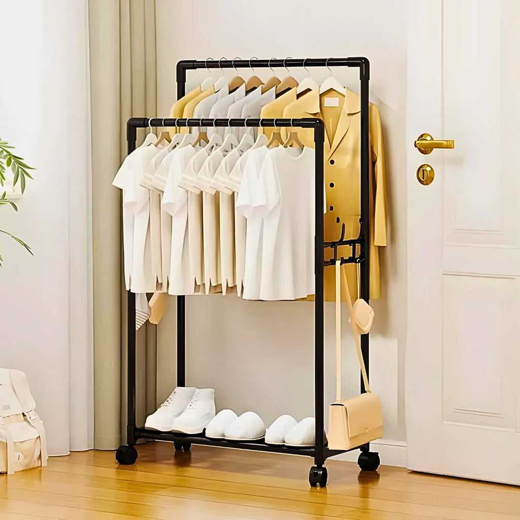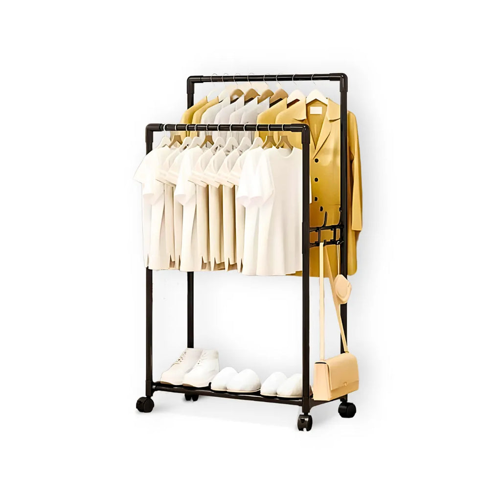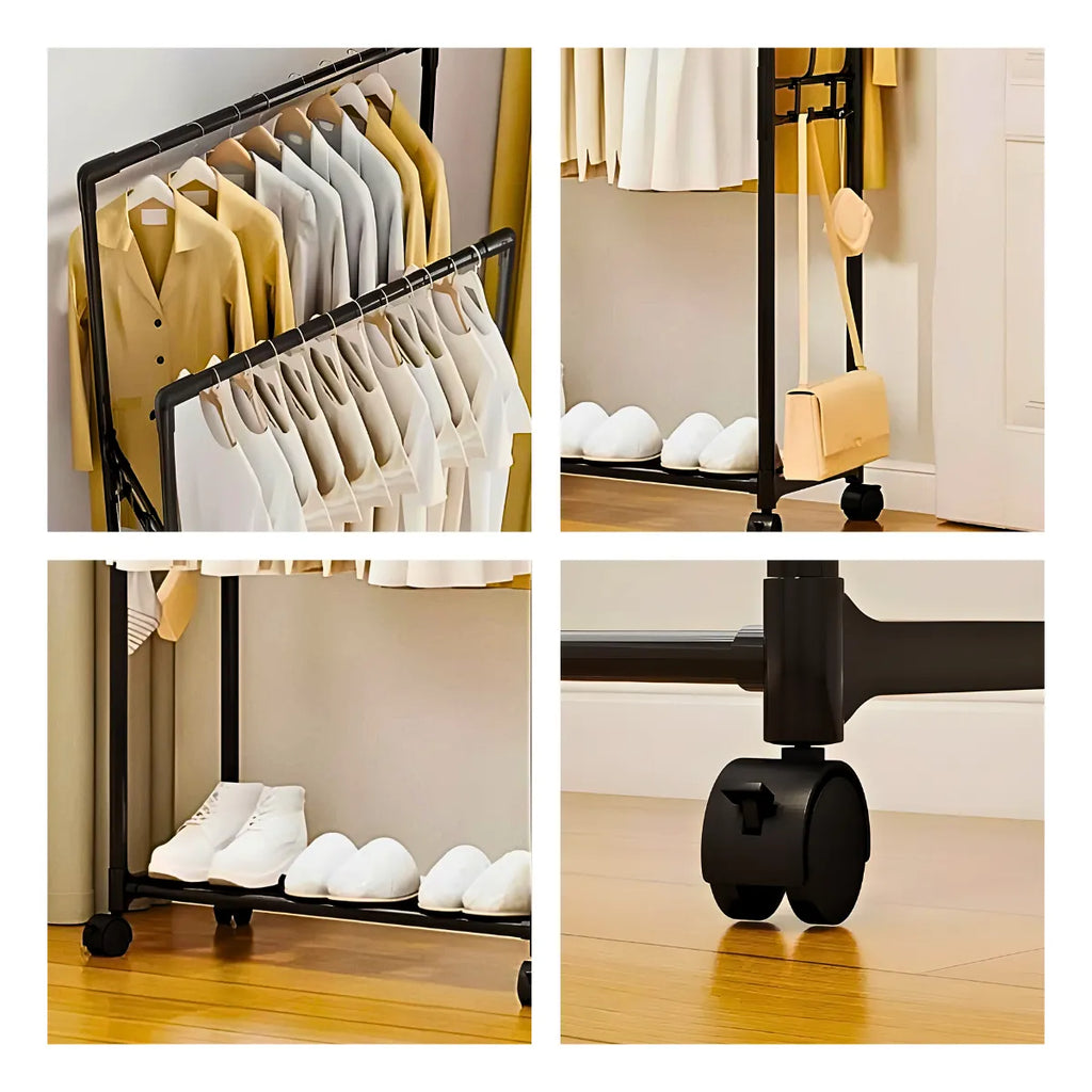 Cabideiro Duplo com Arara e Sapateira com Rodinhas – Organização Inteligente e Versatilidade para o Seu Espaço