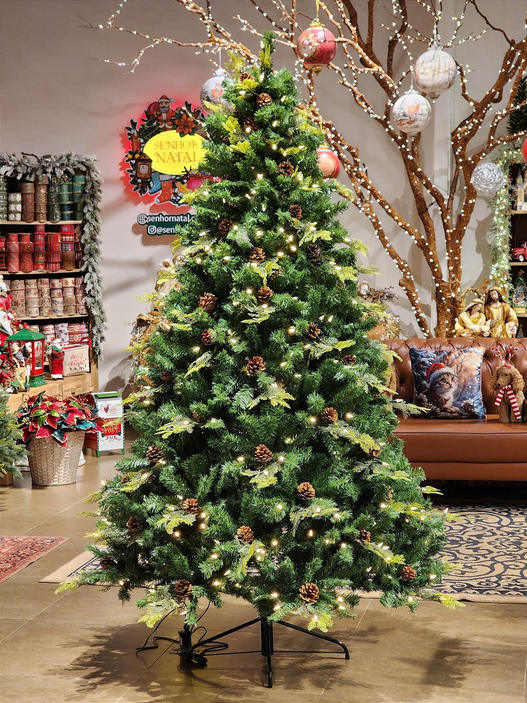 ÁRVORE REALISTA PINHEIRO CONSTELAÇÃO 400 LEDS WARM 1241 GALHOS 2,10CM MODELO CLICK BIVOLT