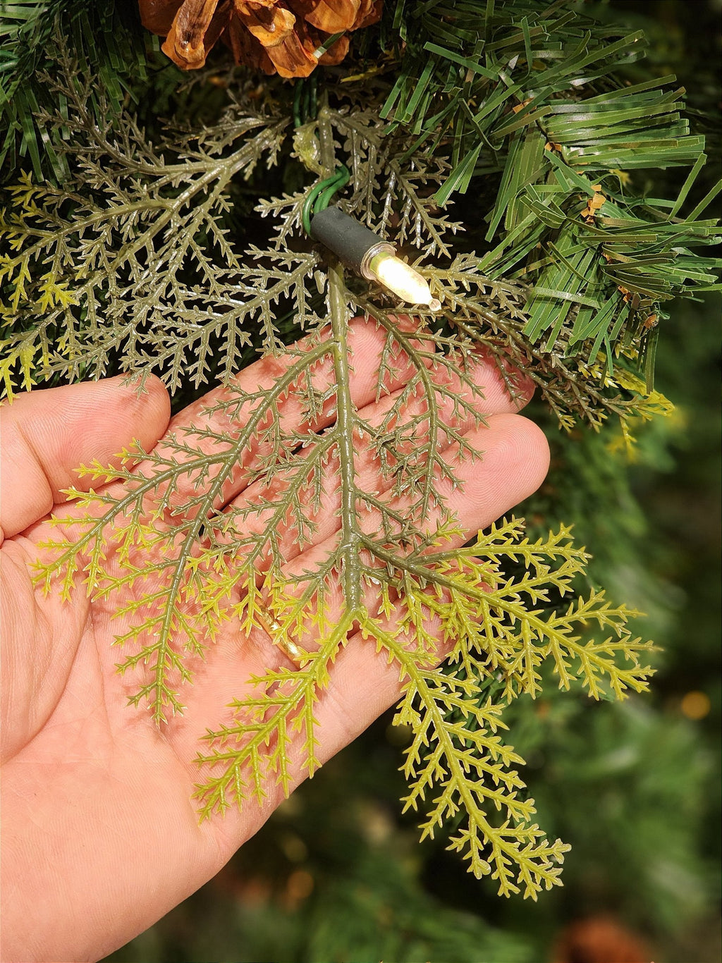 NOVO MODELO DA ÁRVORE CLICK, a árvore com a ligação por plug fácil, no tronco da árvore existe uma conexão de plug para ligação dos piscas, esse sistema e muito utilizado pois a facilidade da montagem e mais rapida, pois os piscas já vem passado nos galhos, esta árvore possui um mix de galhos  emborachados e galhos tradicionais, além das pinhas que vem distribuidas sobre os galhos, seu pisca e o tradicional a lampada com bulbo maior em led trazendo mais luminosidade para a árvore.