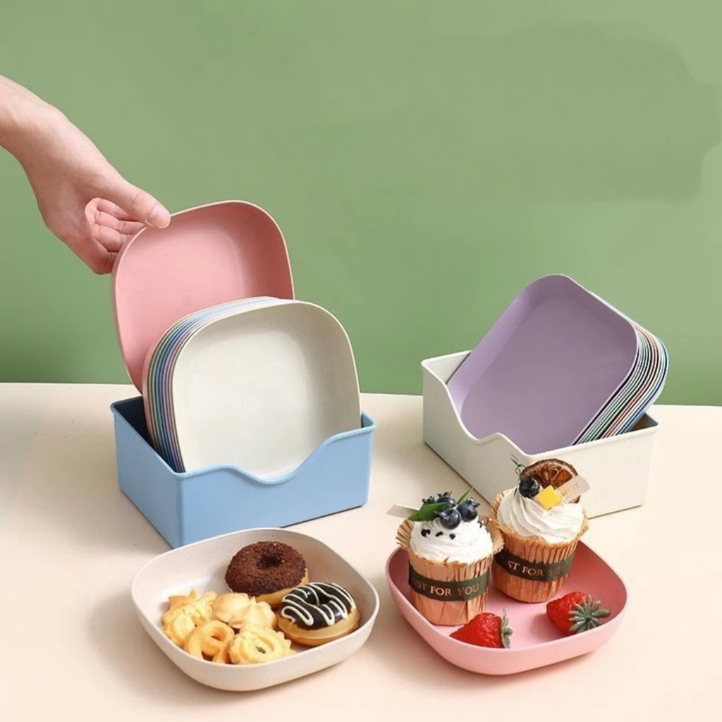 Conjunto 10 Pratos + Escorredor de Plástico Reutilizáveis (Cores Sortidas)